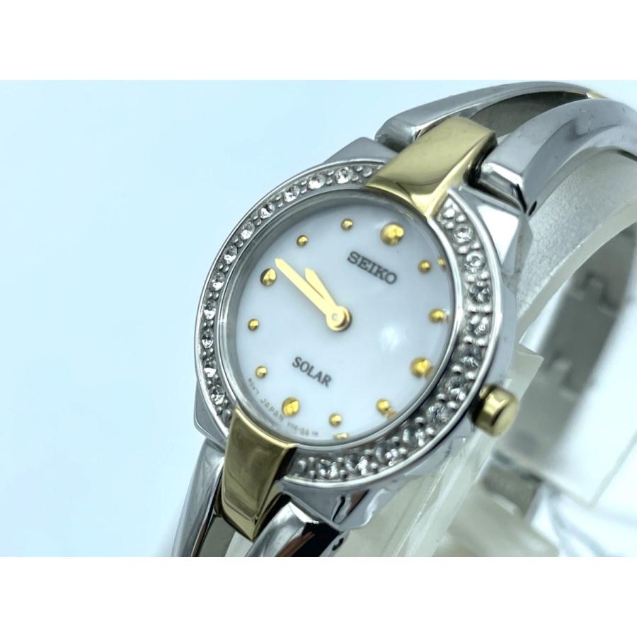 商品情報 ブランド名:セイコー SEIKO 状態:新品(並行輸入品) 仕様:ソーラーバッテリー駆動 女性用 日常生活防水 盤色:白 ケース:ステンレス バンド:ステンレス 型番:SUP502 付属品:外箱、 国際保証書、取扱説明書(英文等) 日本語版説明書(A4に印刷しました) 白の盤面に、時針、時刻印がゴールドになっており、 ワンポイントで輝いていて、とてもかわいい腕時計です。 また、女性に人気のスワロフスキー製のクリスタルが ケースの周りに散りばめられていて、とても輝いています。 駆動は光を電気に変えるソーラーバッテリー方式ですので、 電池交換は不要です。 国内版と違い、とても目をひくデザインになっている レアな海外版モデルです。 ケース外寸:よこ24(りゅうず含む)×たて22×厚さ6mm 重さ:30g バンド長:最大16cm(現状) |